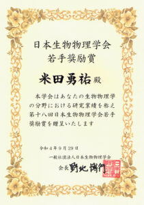 修了生の米田勇祐さんが日本生物物理学会第60回年会にて若手奨励賞を受賞しました