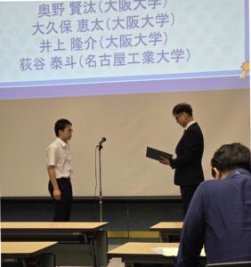 12期生の井上隆介さんが10月14~15日に大阪で開催された粉体工学会2025年度秋季研究発表会にてBP(ベストポスター)賞を受賞しました。