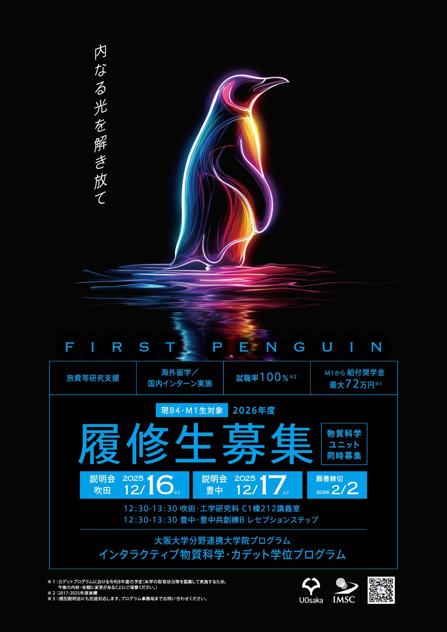 インタラクティブ物質科学・カデット学位プログラムでは、下記日程において2026年度履修生の願書を受付けいたします。